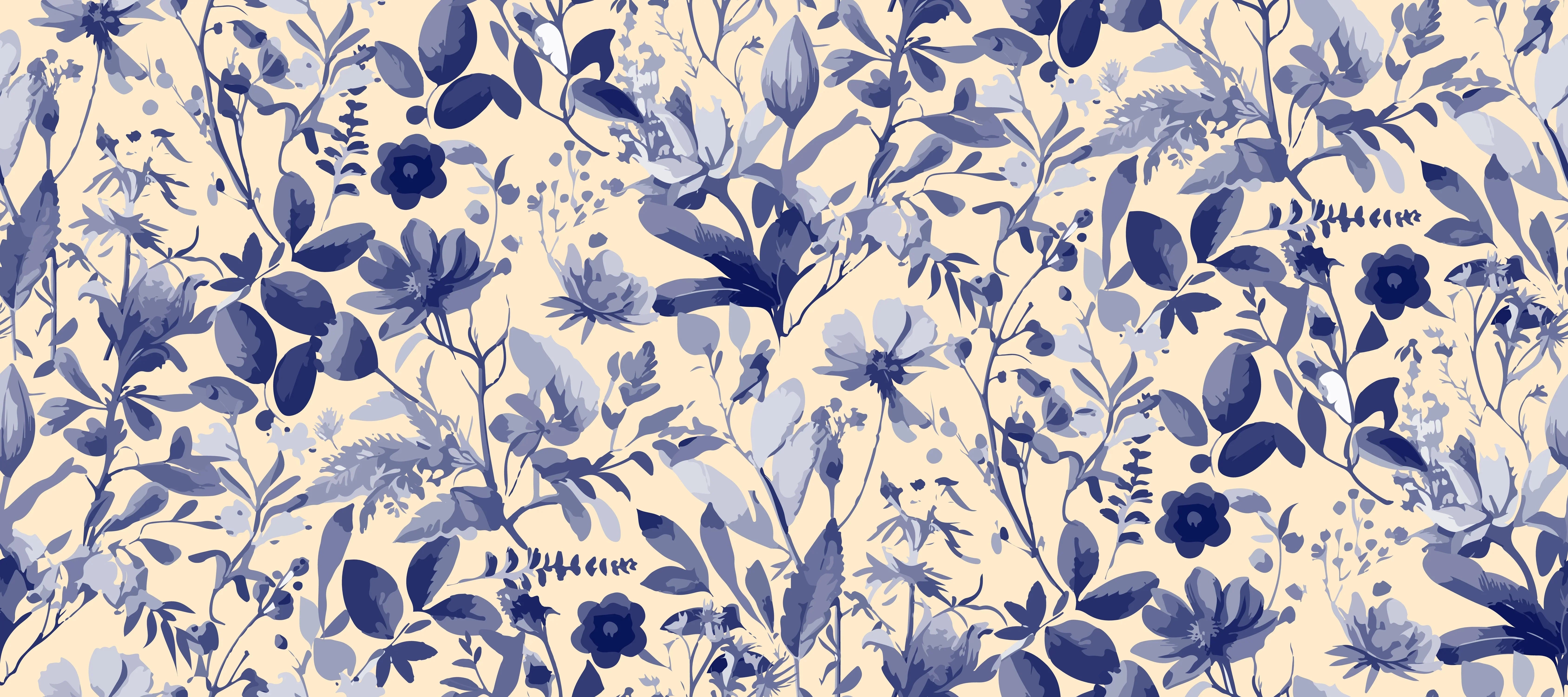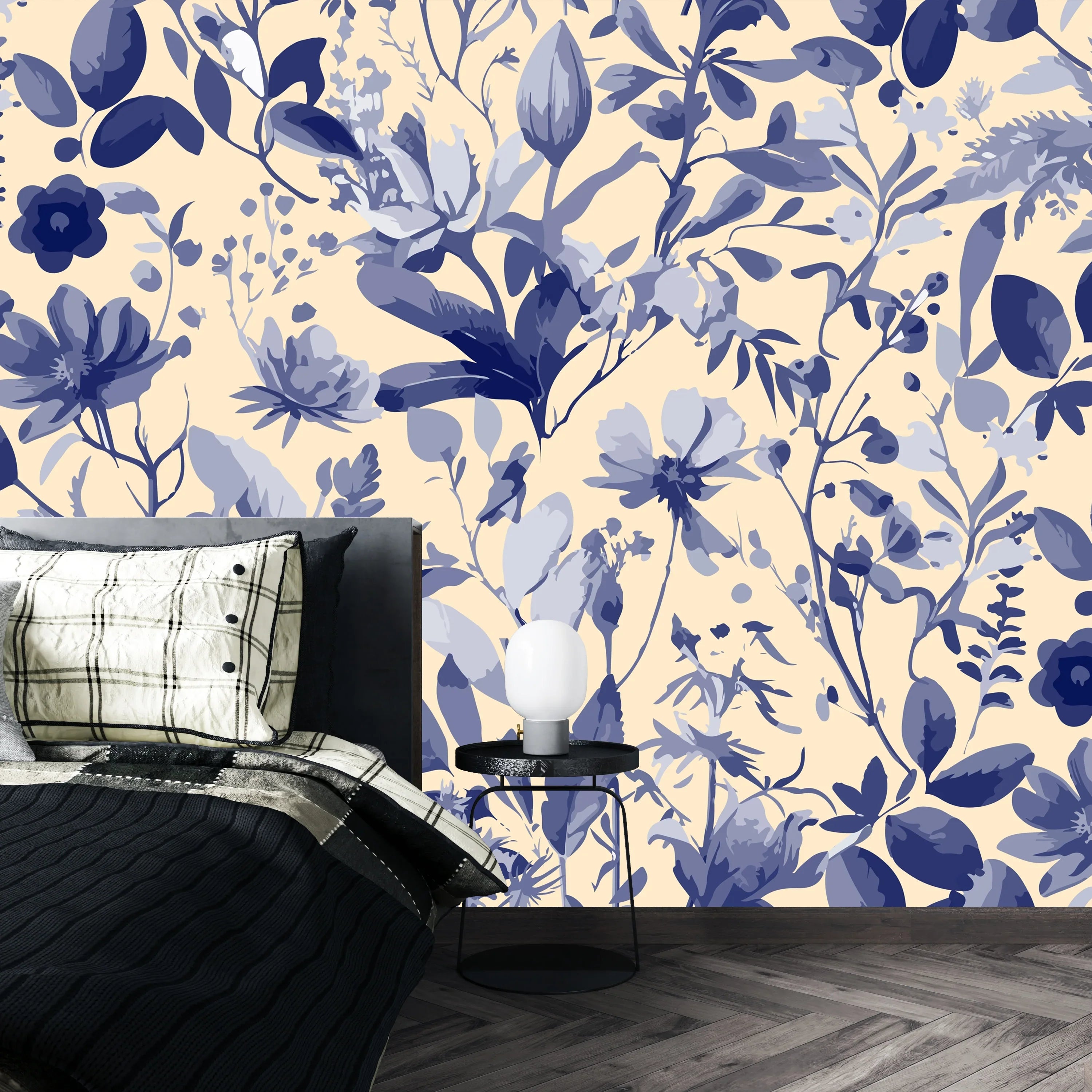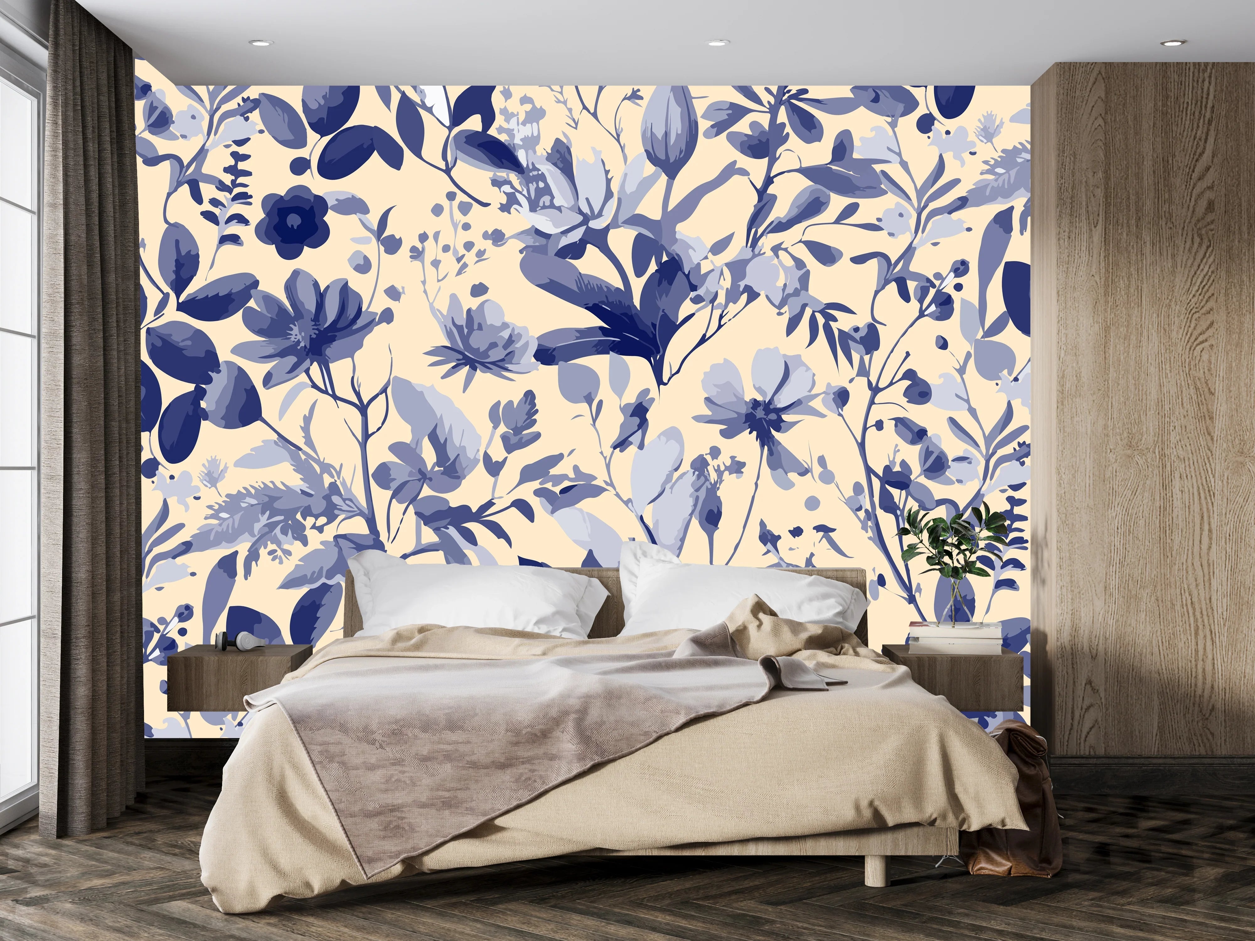 Purple Floral Wallpaper, Seamless Pattern Mural, Oversized Custom Size Wall Art, Non-Woven, Non-Adhesive, Modern Wall Paper, Removable