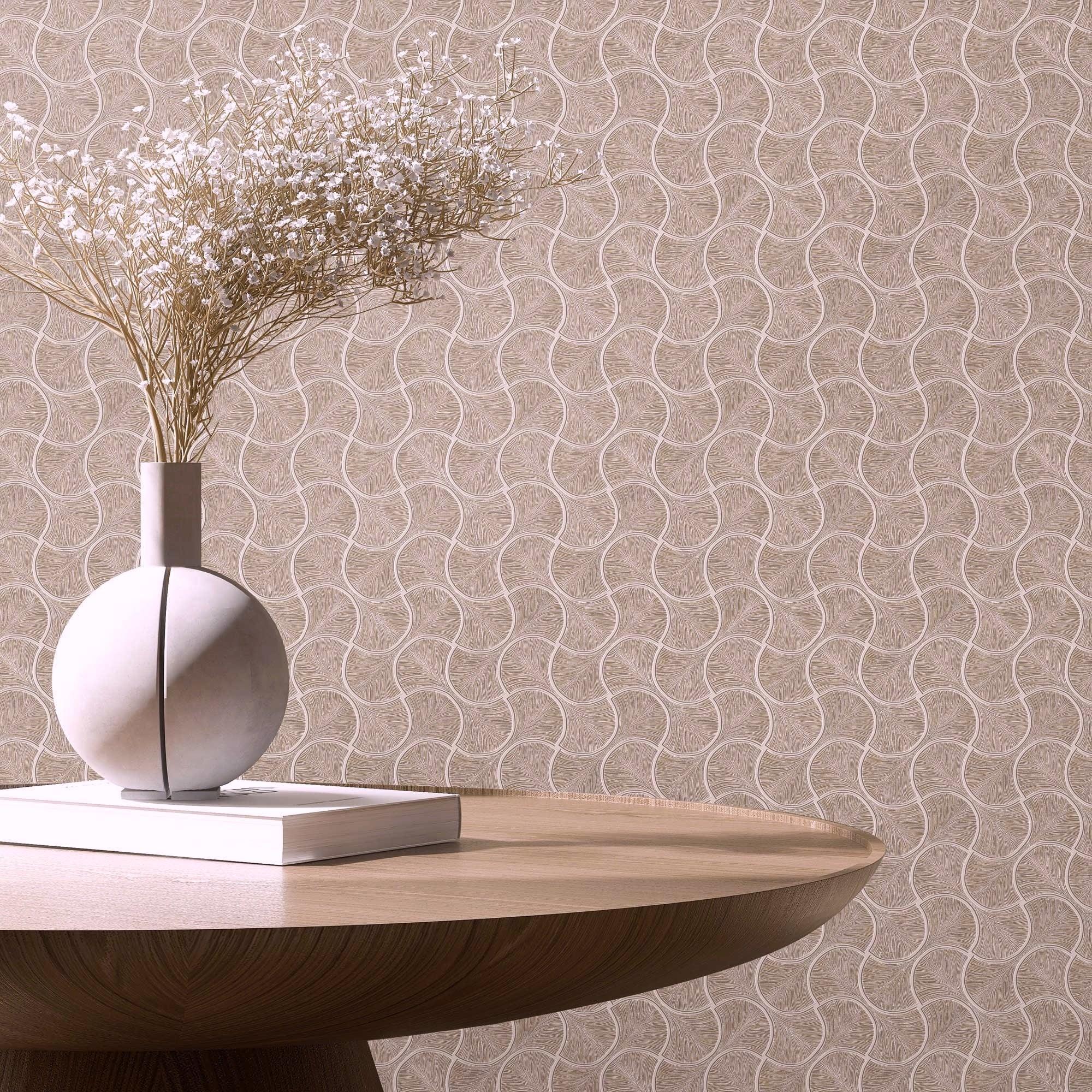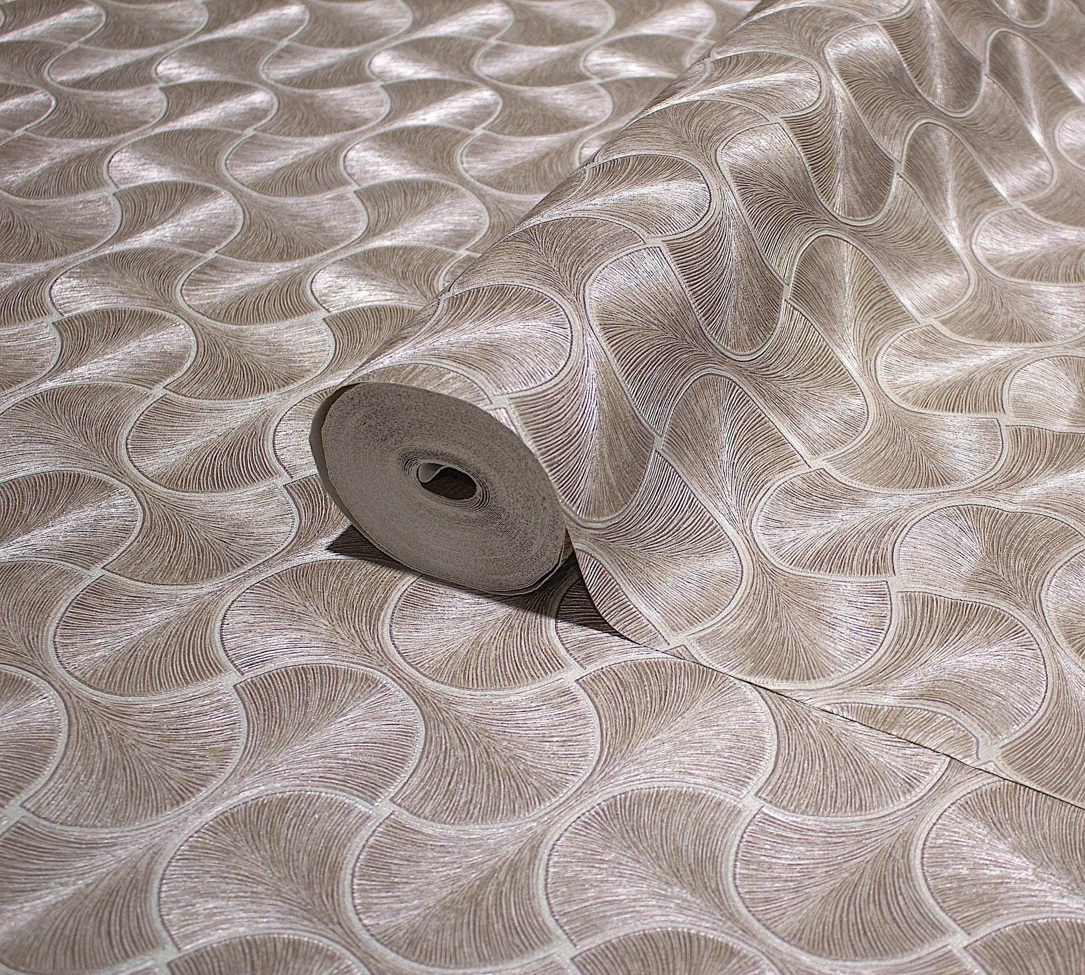 Round Geometric Shapes Deep Embossed Wallpaper, Light Brown Shiny Surface Textured Wall Accent Decor