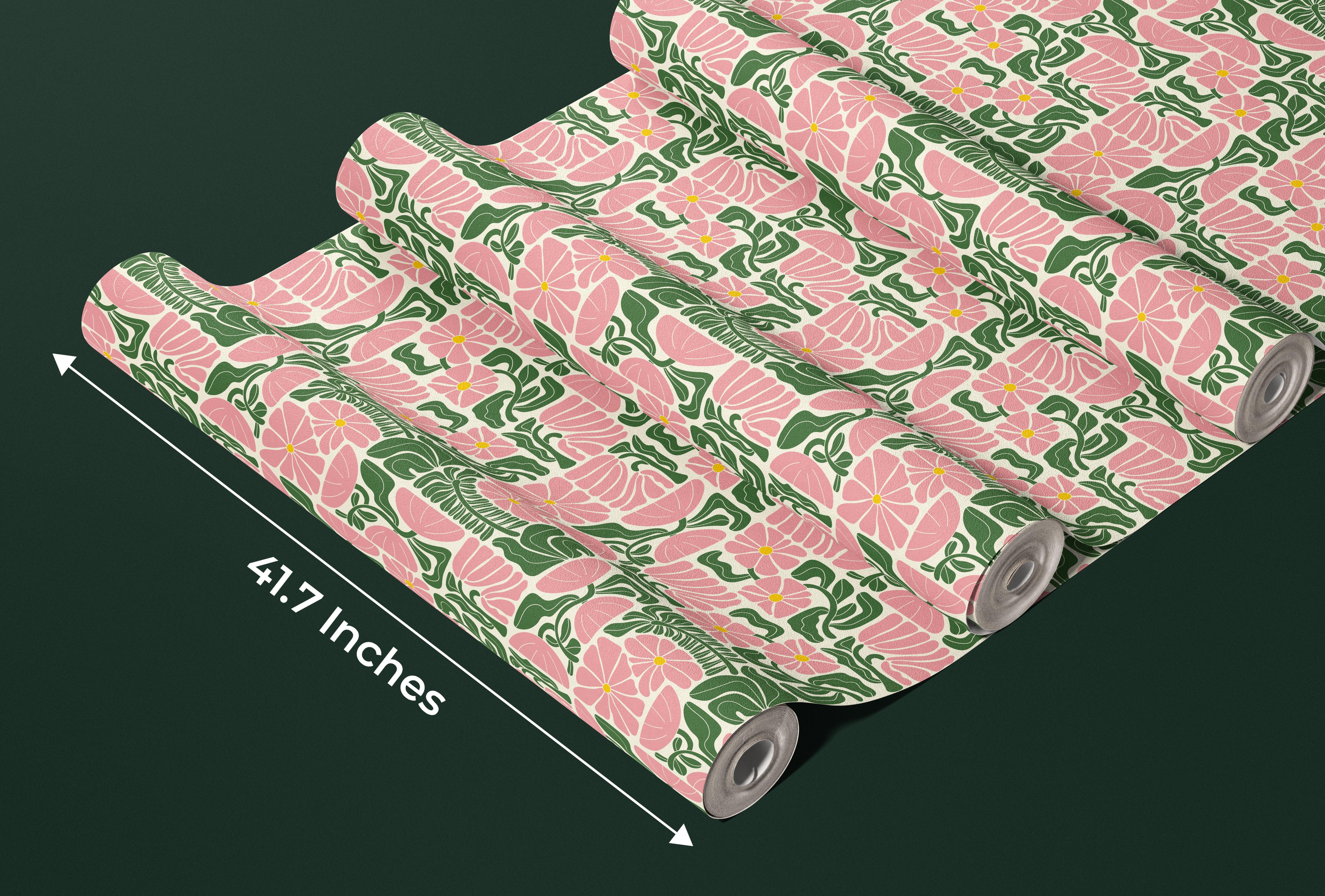 Abstract Geometric Floral Wallpaper, Seamless Pattern Mural, Oversized Custom Size Wall Art, Non-Woven, Non-Adhesive, Modern Wall Paper, Removable
