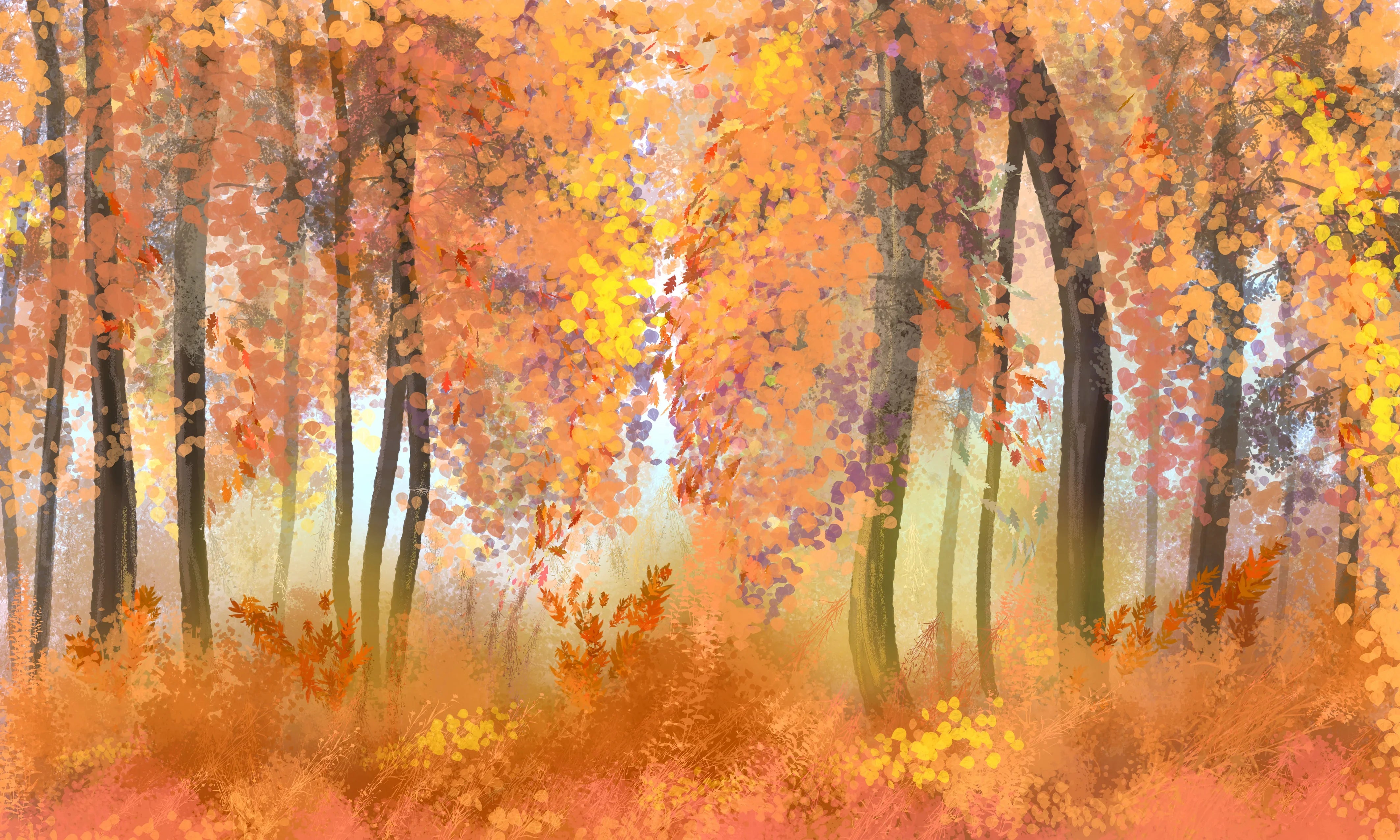 Autumn Forest Wallpaper, Oil Painting Mural, Oversized Custom Size Wall Art, Non-Woven, Non-Adhesive, Modern Wall Paper, Removable