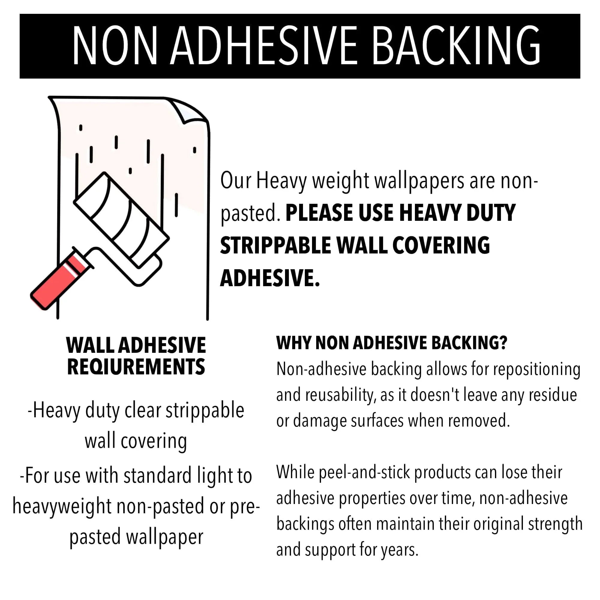 Unlike peel and stick wallpapers, our 3D embossed and textured wallpapers feature a non-paste backing, which requires the use of wall adhesive for installation. We highly recommend you to buy a high-quality wall adhesive from reputable home improvement stores. It is crucial to choose a reliable adhesive to guarantee a secure and long-lasting installation of our luxury wallpaper.