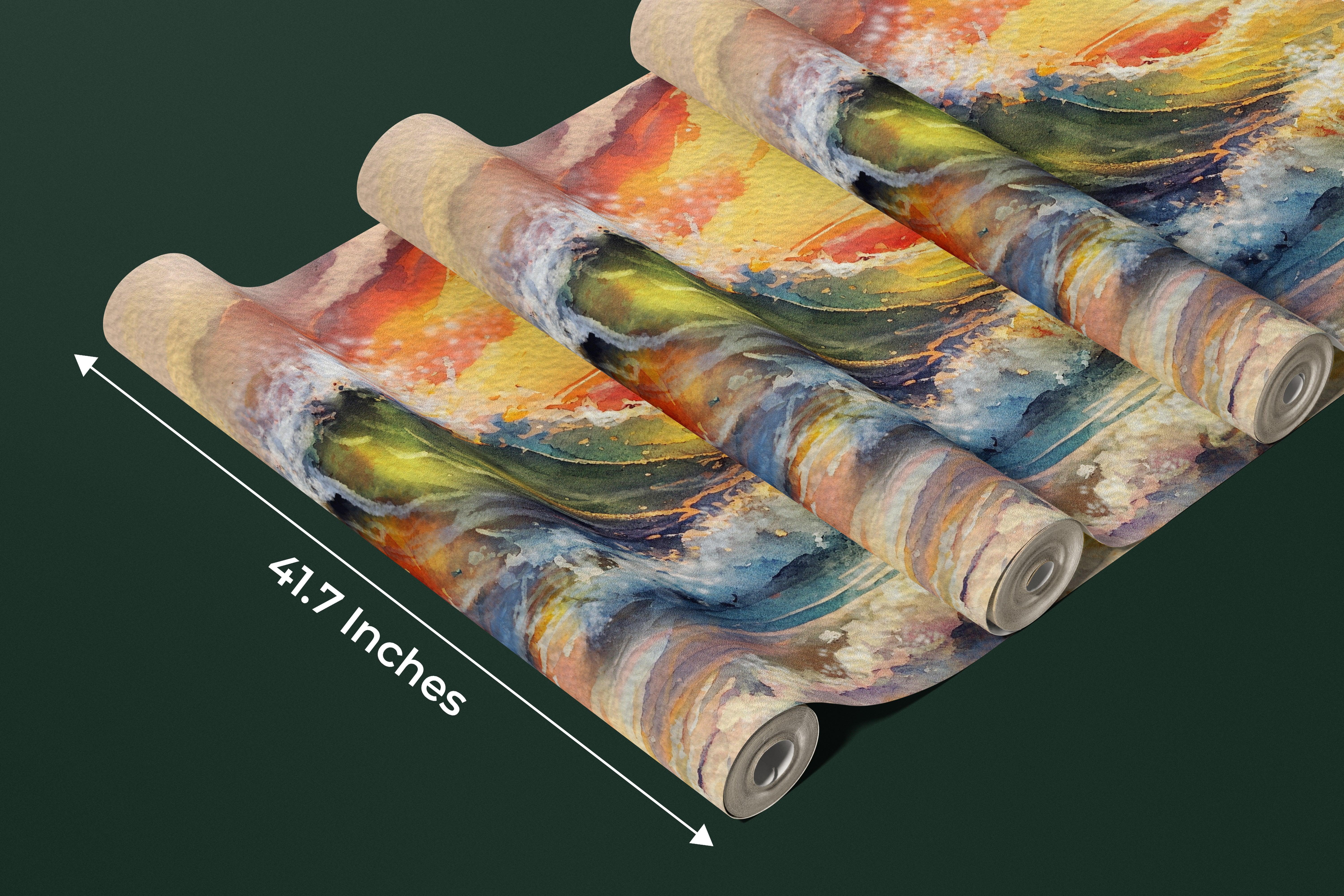 Beautiful Sunset Over Ocean Wallpaper, Oil Painting Mural, Oversized Custom Size Wall Art, Non-Woven, Non-Adhesive, Modern Wall Paper, Removable