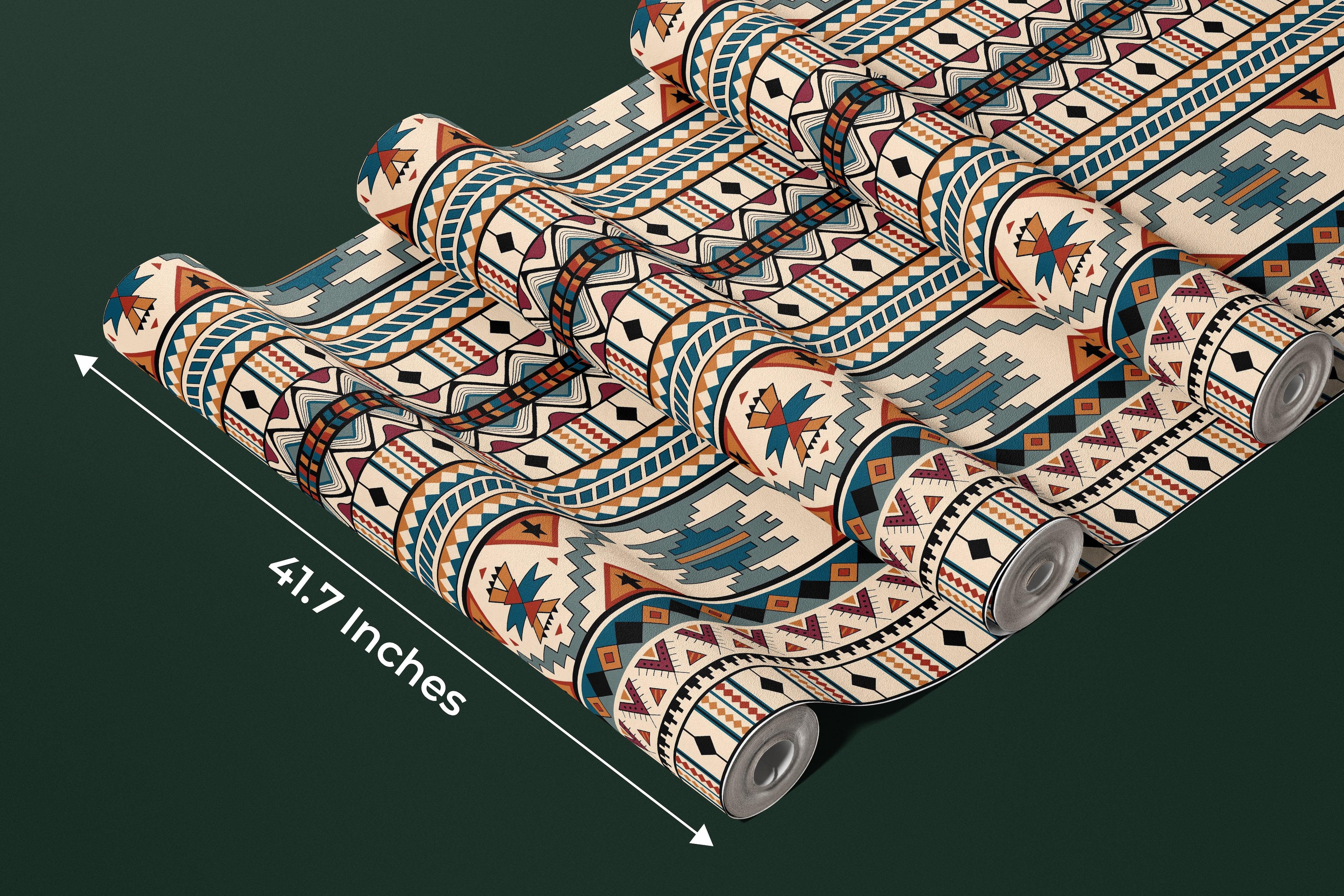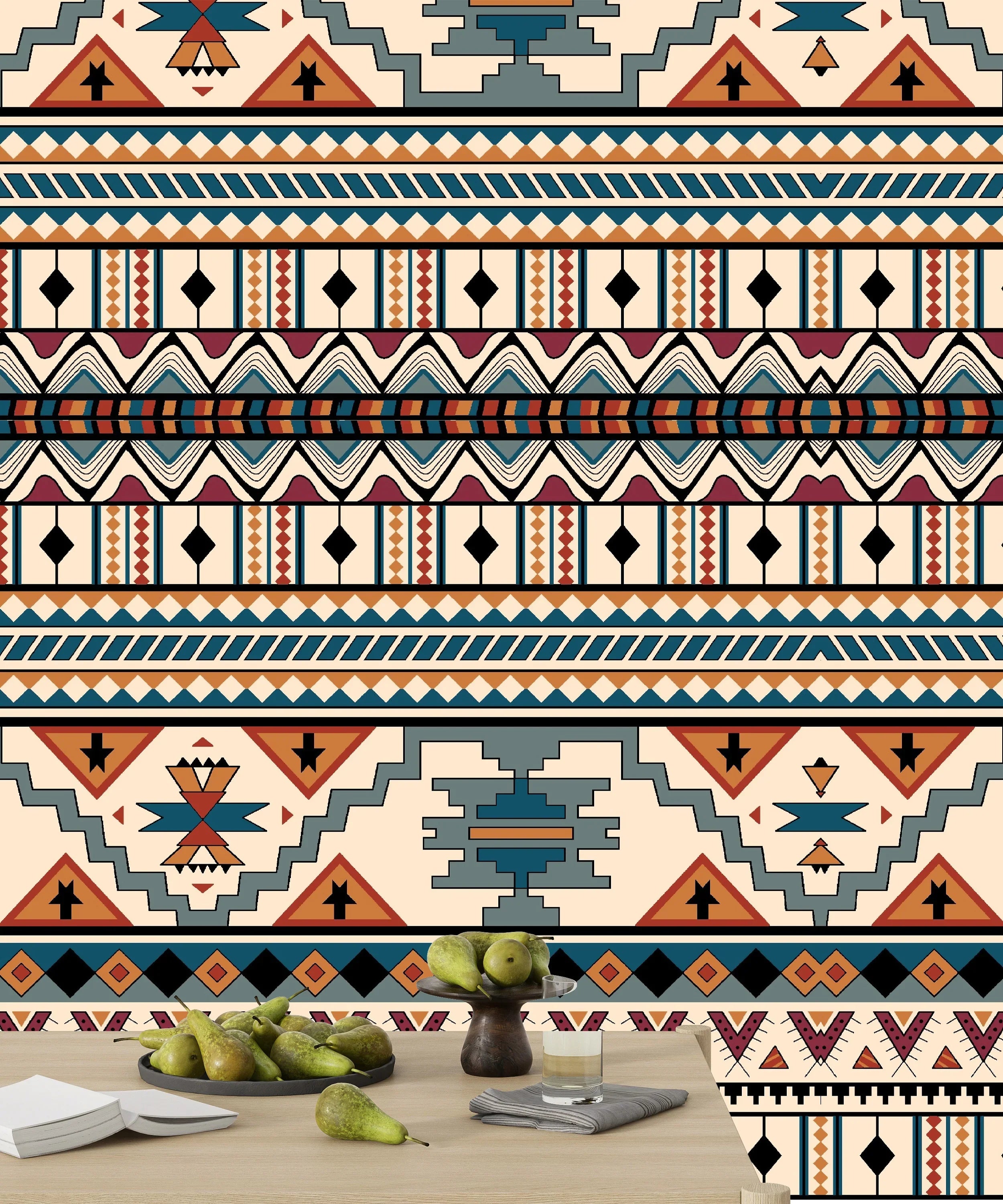 Ethnic Geometrical Wallpaper, Seamless Pattern Mural, Oversized Custom Size Wall Art, Non-Woven, Non-Adhesive, Modern Wall Paper, Removable
