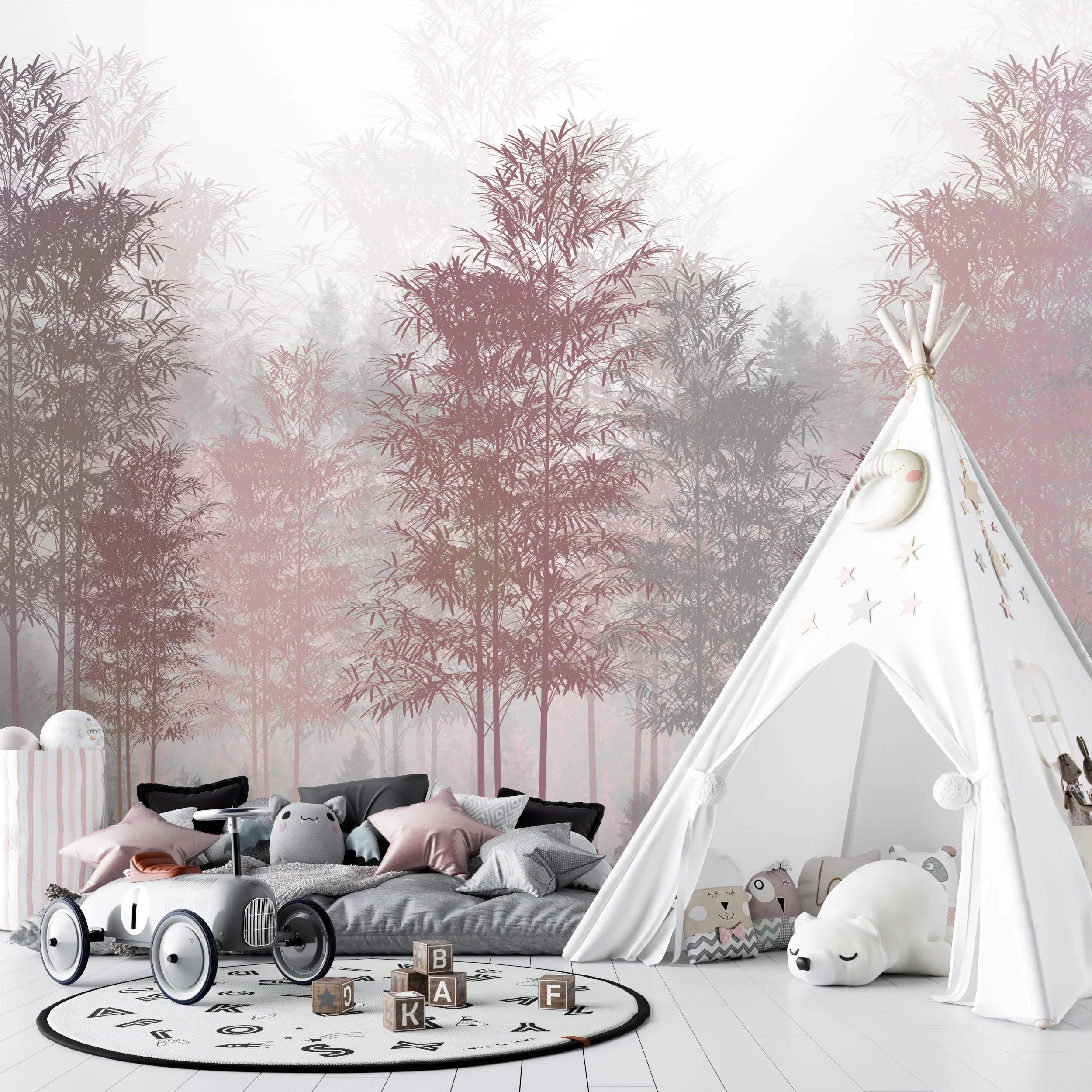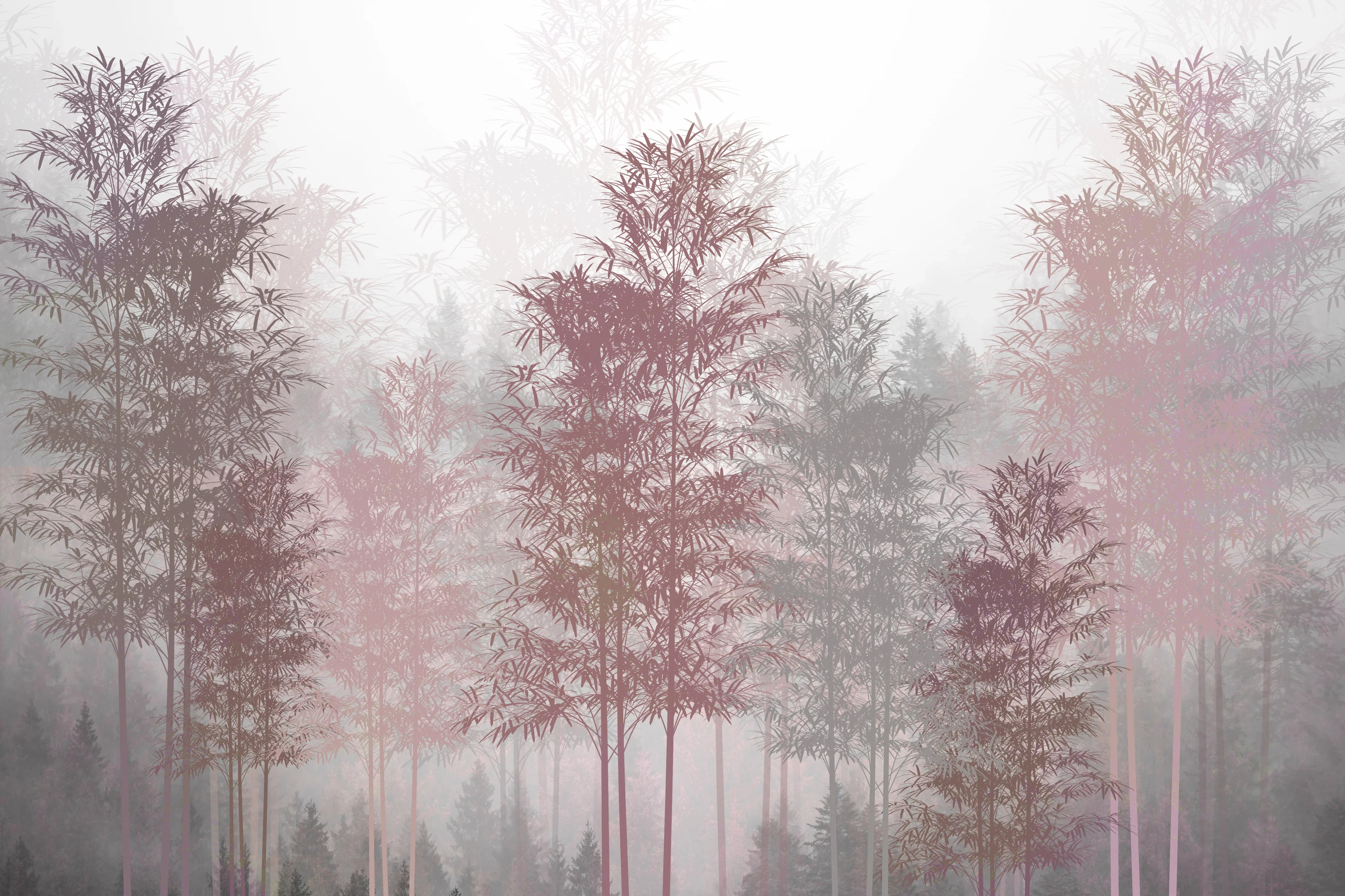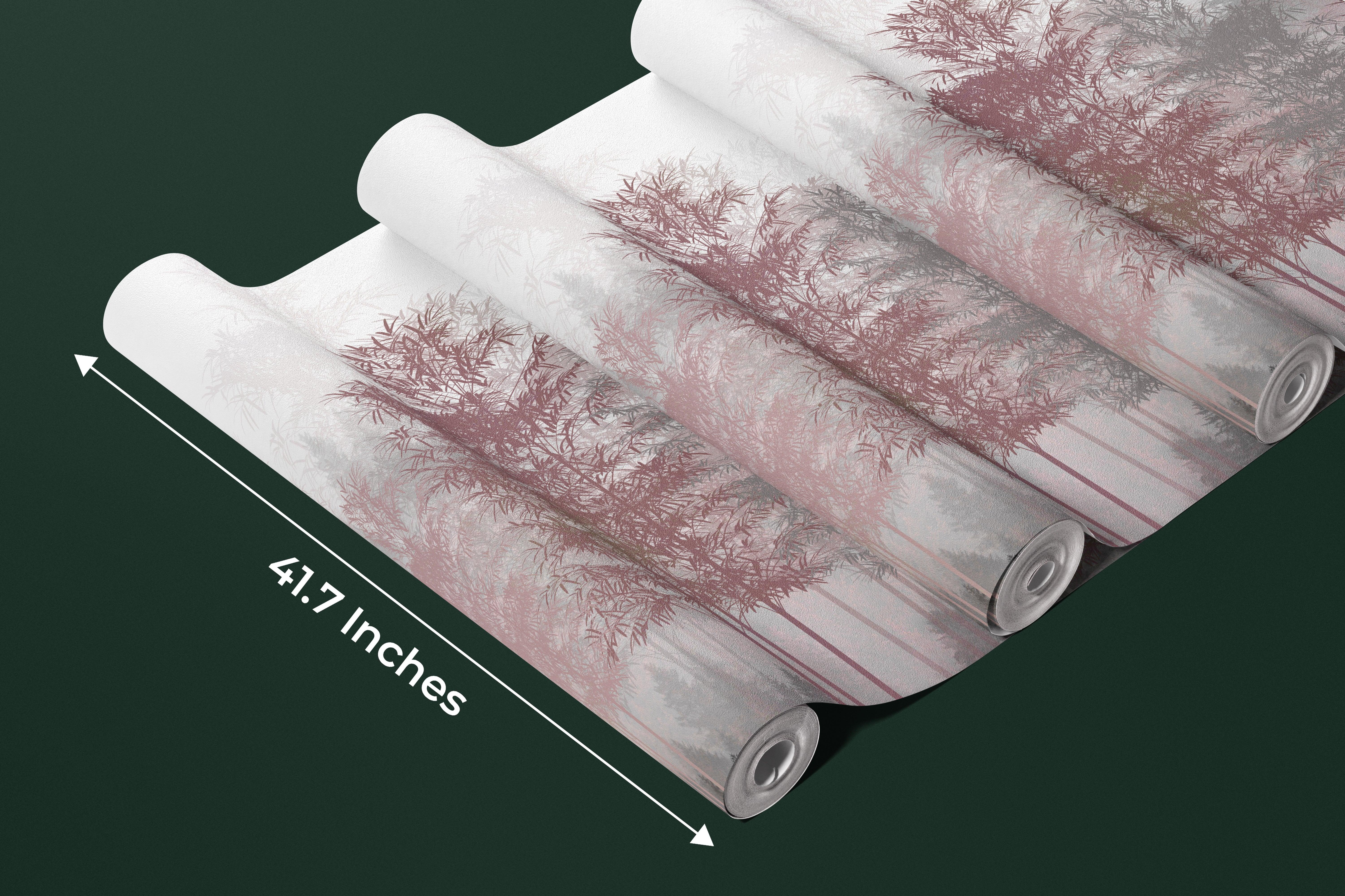 Red and Gray Trees Wallpaper, Foggy Forest Mural, Oversized Custom Size Wall Art, Non-Woven, Non-Adhesive, Modern Wall Paper, Removable
