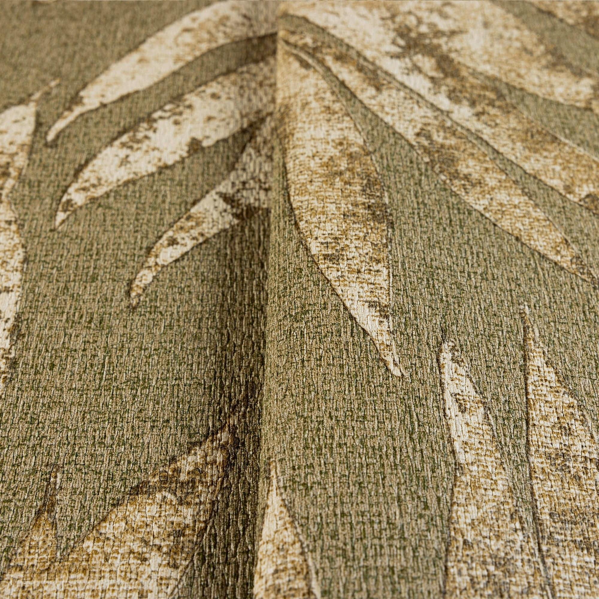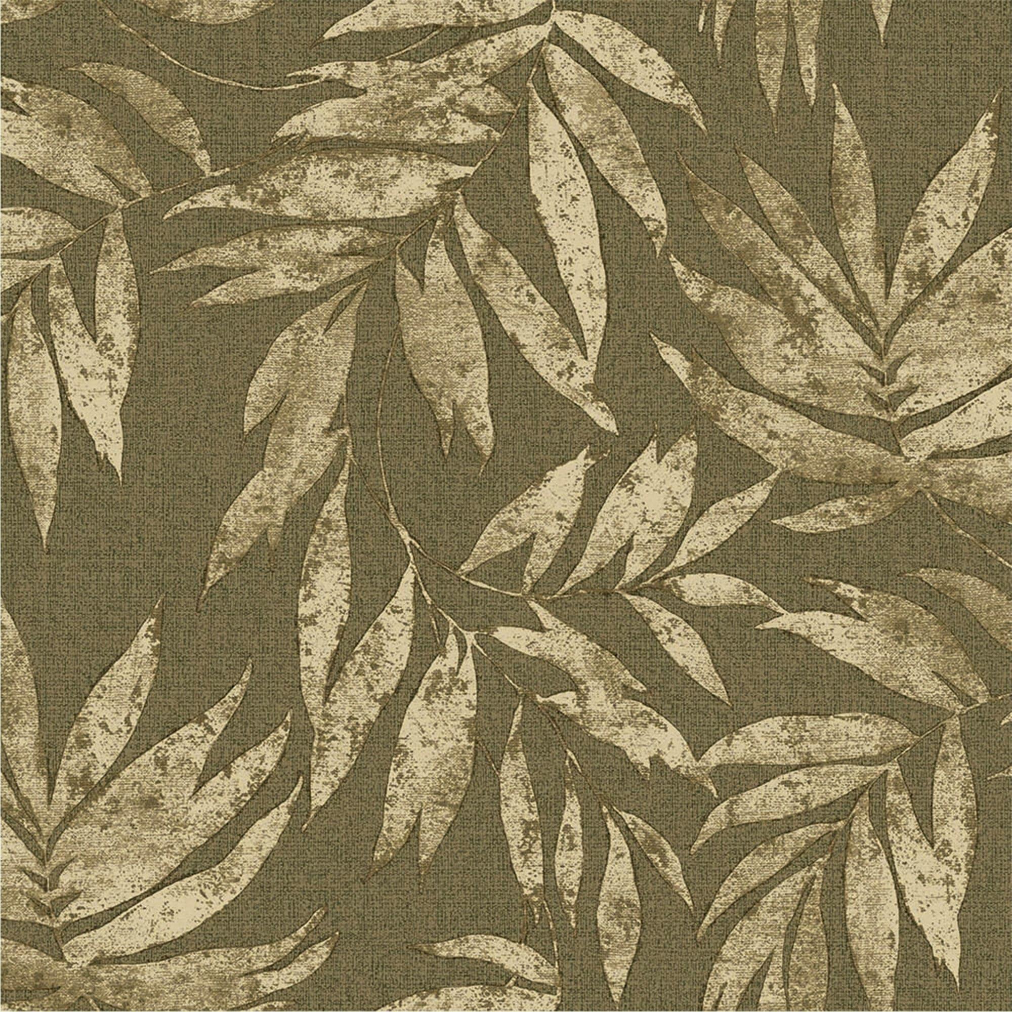 Washed Green Leaf Wallpaper, Textured Faded Tree Leaves Wallcovering, Non-Pasted