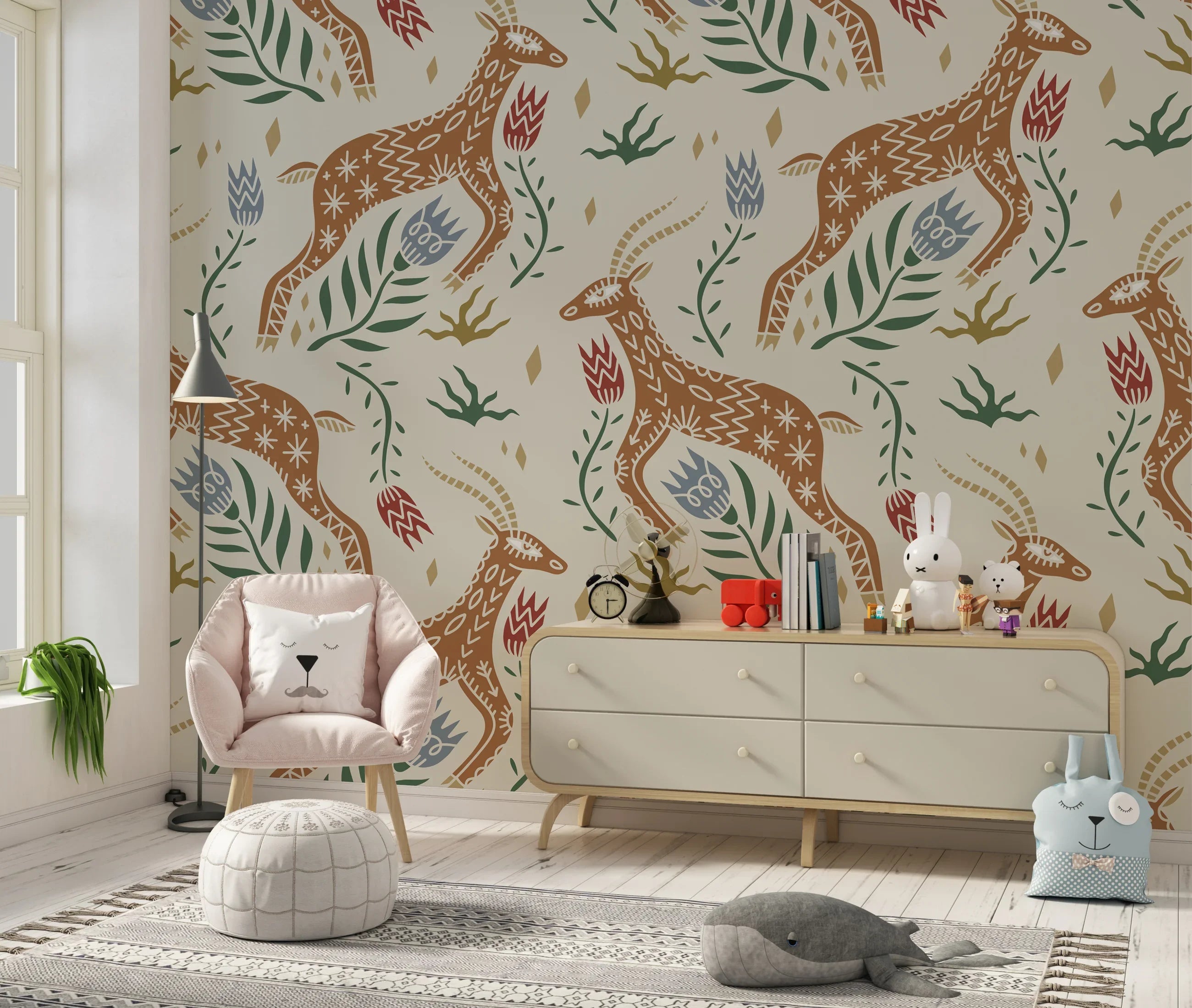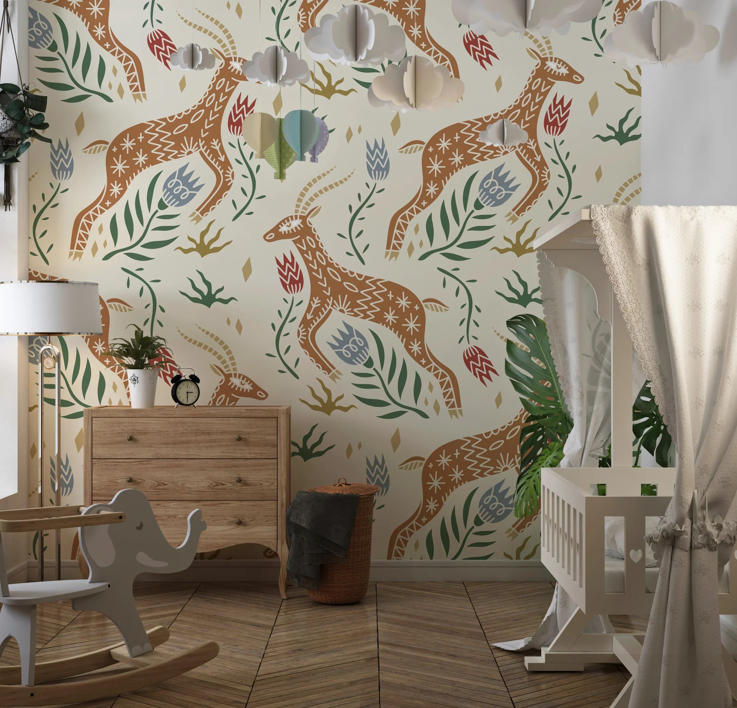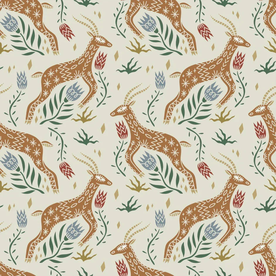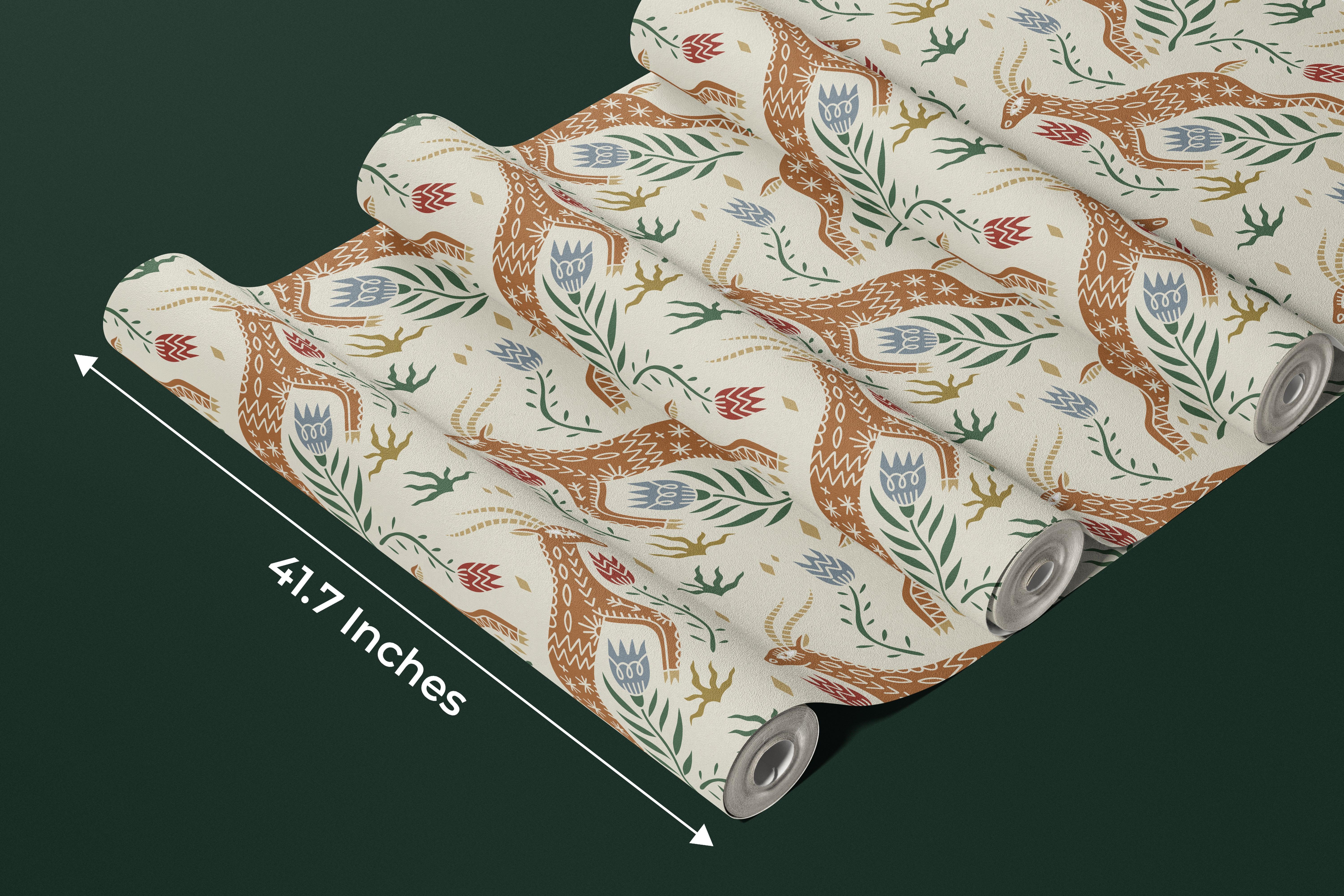 Celestial Folk Antilope Wallpaper, Boho Mural, Oversized Custom Size Wall Art, Non-Woven, Non-Adhesive, Modern Wall Paper, Removable