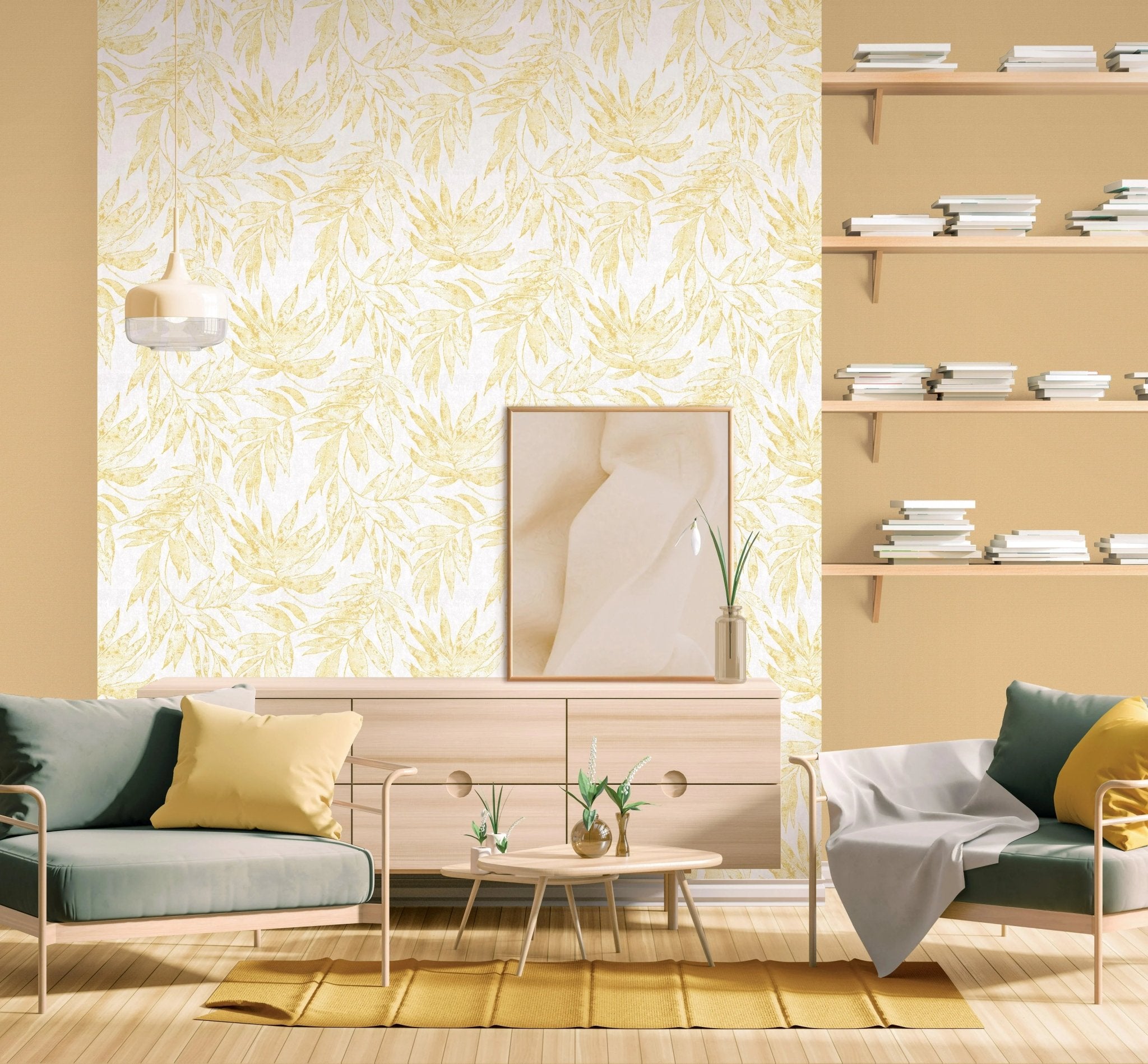 Yellow Embossed Wallpaper, Textured Wallpaper,Natural Wallpaper, Modern & Minimalist Wall Covering,Modern Look Neutral Colors Glittering Wallcovering